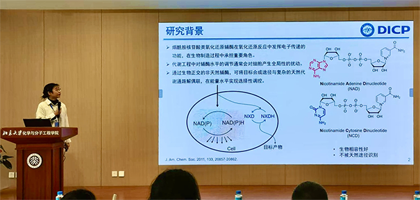 2025年11月1-2日,由北京大学化学与分子工程学院主办的第七届化学生物学研究生前沿论坛在北京成功举办。本次论坛设立“化学生物学反应与酶工程”、“细胞命运调控化学生物学”、“化学生物学探针与成像技术”、“化学生物学疗法发展”四大主题。论坛以研究生的自主交流为主,通过口头报告和墙报展的形式呈现,同时邀请了一批化学生物学领域的知名学者专家作为论坛学术顾问,拟在促进学生之间的自主交流,并提供良好的互动平台。 我组在读博士研究生胡英菡通过投稿入选论坛口头报告环节,在“化学生物学反应与酶工程”主题做题为“创制非天然辅酶偏好型丙氨酸脱氢酶”的报告,与参会人员分享并讨论非天然辅酶NCD相关的研究进展。(文/胡英菡 图/化学生物学研究生前沿论坛会务组、胡英菡)